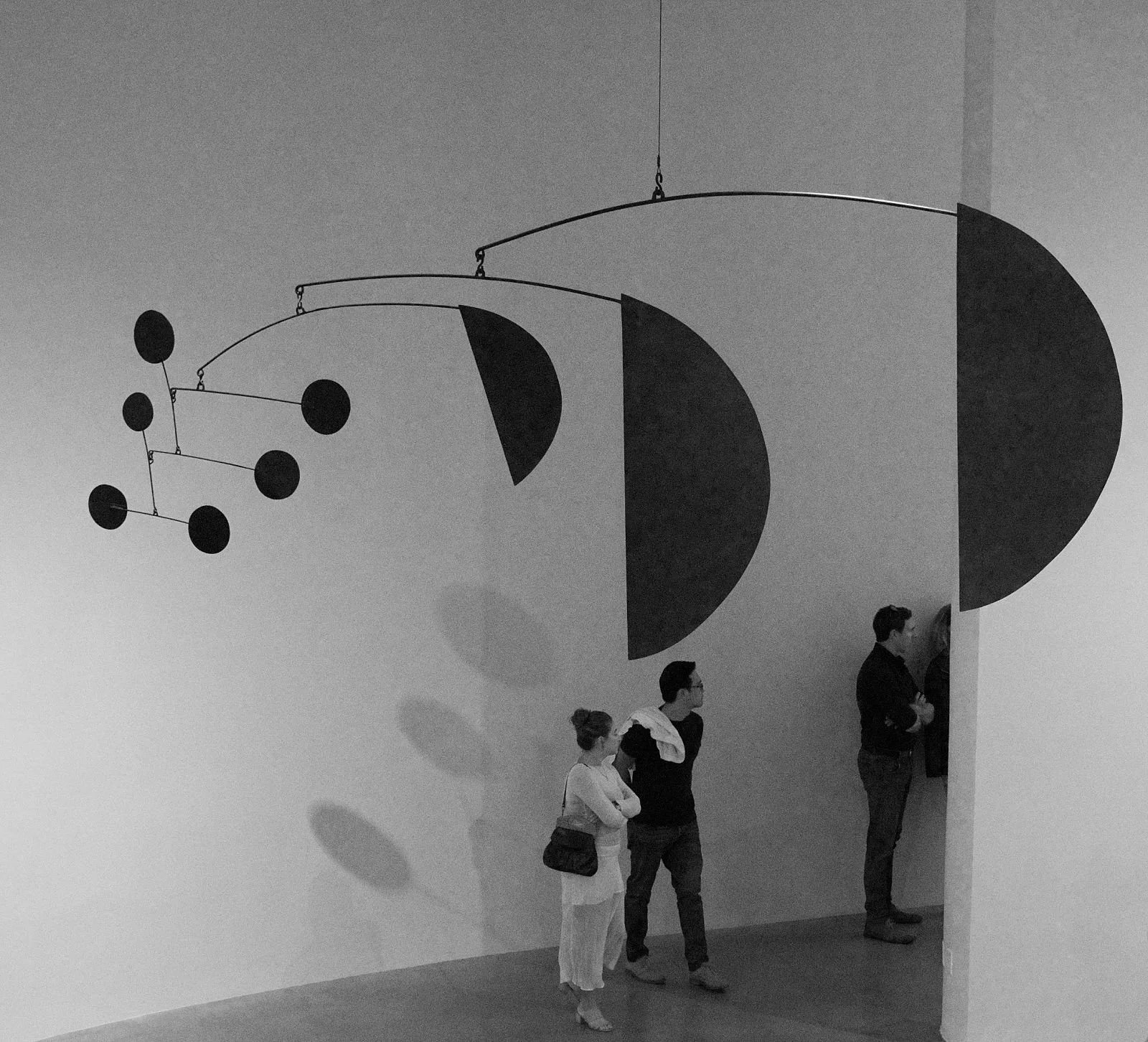 Black and White View of a Calder Mobile of Black Circles and Semicircles on 26 September 2025
